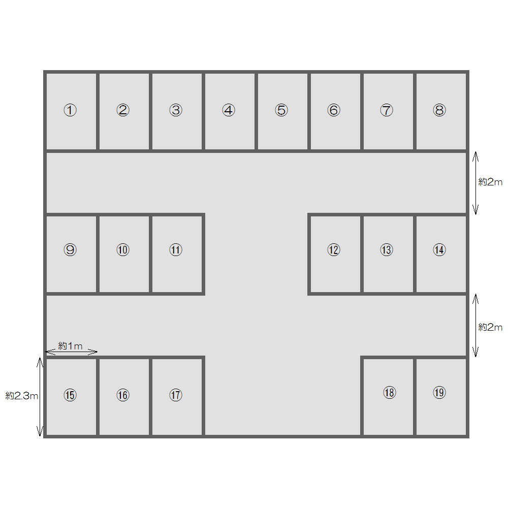 | ライン式バイク駐車場(W1000×D2300) | 2.30㎡ | W1000/D2300 /H | △ | 7,000円 |